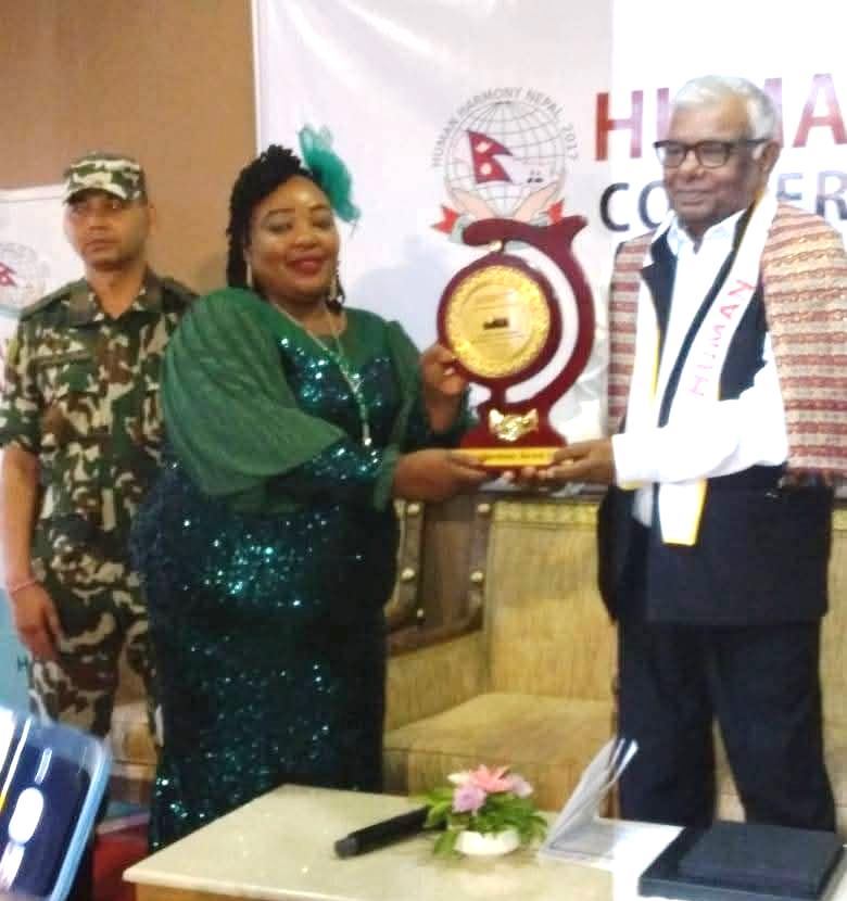 Receiving the UN World Humanitarian Day Award from the Government of Nepal