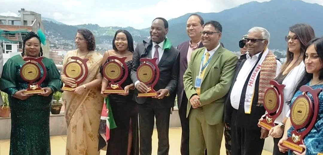 Receiving the UN Humanitarian Day Awards in Kathmandu, Nepal